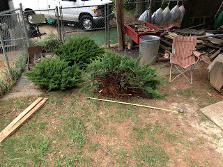 I bit off way more than I could chew....These 8 junipers were HUGE about 4 or 5 feet in dia. and the bottom limbs had rooted to the ground....Not very good bonsai material. But I went ahead and dug 3 of them up anyway. Hell that was all I could fit in my full size conversion van.